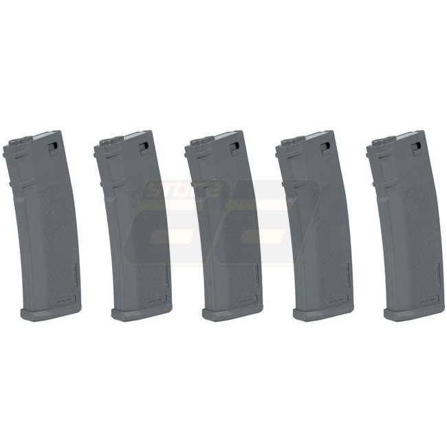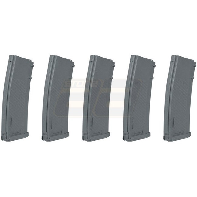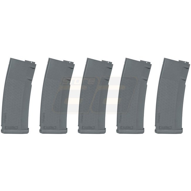 Get the Specna Arms 125rds S-Mag Magazine Set in Grey. Made of durable polymer, suitable for M4/M16 AEG. Set includes 5 magazines with 100rds capacity. Weighs only 155g.