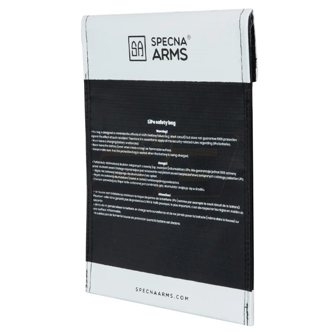 Protect your lithium batteries with ease using the Specna Arms Li-Po Battery Protection Bag. Heat and fire resistant, this bag ensures safety during charging and storage. Velcro closure and venting/wiring openings add convenience. Dimensions: 18x23 cm.