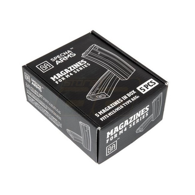 High-quality Specna Arms M4 300rds Metal Magazine Set in sleek Black color. Compatible with M4/M16 AEG models.