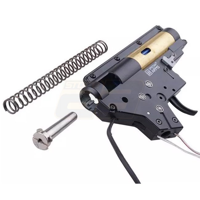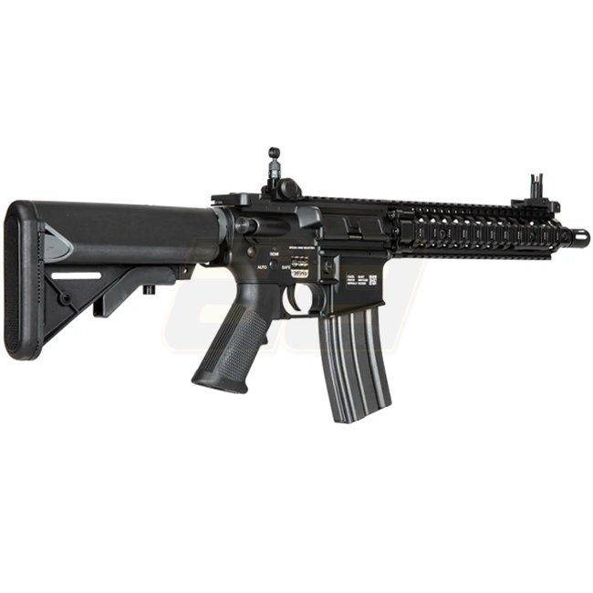 The stock and pistol grip are made of polymer plastic. The AEG uses the Enter & Convert™ quick spring change system. This allows for quick and efficient adjustment of the replica's performance to the expected conditions on the field, without the need for access to a workshop or a set of special tools - after removing the gearbox, the spring change itself takes literally seconds.