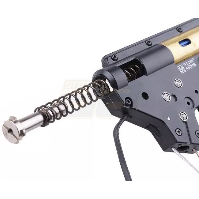 The housing of the SA-A06 is mainly made of a zinc-aluminum alloy, screws, pins and belt holder are made of steel. The stock and pistol grip are made of polymer plastic. The AEG uses the Enter & Convert™ quick spring change system. This allows for quick and efficient adjustment of the replica's performance to the expected conditions on the field, without the need for access to a workshop or a set of special tools - after removing the gearbox, the spring change itself takes literally seconds.