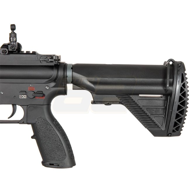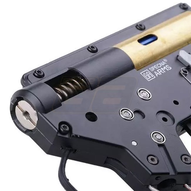 The stock and pistol grip are made of polymer plastic. The AEG uses the Enter & Convert™ quick spring change system. This allows for quick and efficient adjustment of the replica's performance to the expected conditions on the field, without the need for access to a workshop or a set of special tools - after removing the gearbox, the spring change itself takes literally seconds.