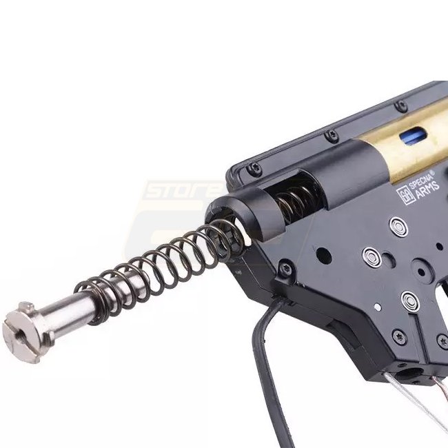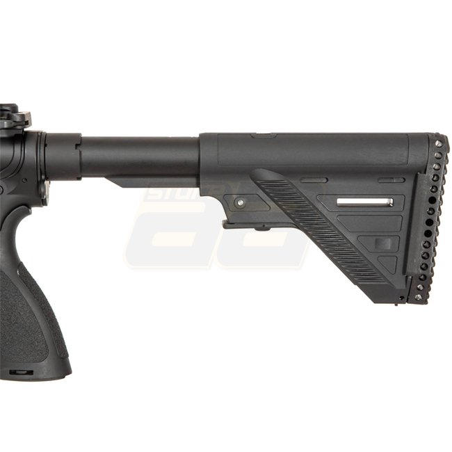 The stock and pistol grip are made of polymer plastic. The AEG uses the Enter & Convert™ quick spring change system. This allows for quick and efficient adjustment of the replica's performance to the expected conditions on the field, without the need for access to a workshop or a set of special tools - after removing the gearbox, the spring change itself takes literally seconds.