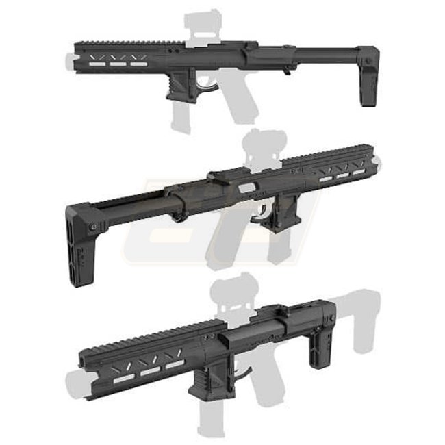 Upgrade your SRU Action Army AAP-01 GBB with this sleek Carbine Kit in Black. Transform your pistol into a powerful carbine for enhanced accuracy and control. Durable construction with a modern design, perfect for tactical shooting enthusiasts.