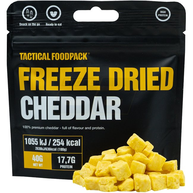 The Tactical Foodpack Freeze Dried Cheese Bites will satisfy your salty craving and are a great source of calcium and protein. It’s a great change from the sweet in your backpack – full of flavour, crispy and 100% real cheese! Eat straight from the pack on the trail or enjoy by the campfire in the evening.