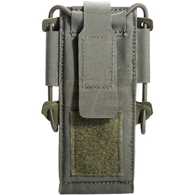 Small, folding flap radio pouch ( 15 cm x 7 cm) for digital radio devices. The bag has an adjustable flap angle and a display protector made of vinyl. Made of CORDURA® and material with IRR treatment. Both the European CORDURA® materials as well as web-bing, hook-and-loop fasteners and buckles meet the high German Bundeswehr standards TL 8305-0278 and TL 8305-0281 with regard to the IRR camouflage effect (IRR 650 – 1250nm / 10 – 42%).