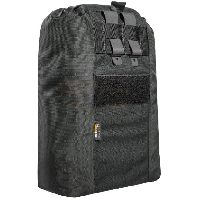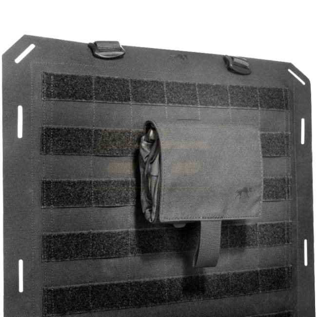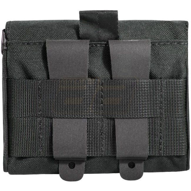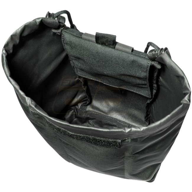 Compact Tasmanian Tiger Dump Pouch MK II in Black, made of durable 100% CORDURA material. Features 4 pouches in 3 sizes, packable design, one-hand operation, and is compatible with 6 x G36 double magazines. MOLLE rear panel for easy attachment.