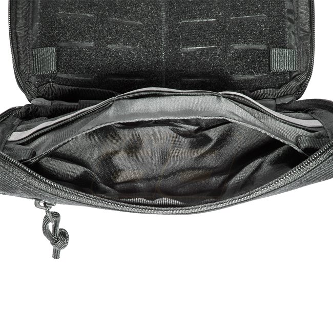 High-quality Tasmanian Tiger EDC Pouch in sleek black design. Tactical MOLLE zipper pouch with versatile features such as zip compartment, hook-and-loop closure patch, and secret pockets. Perfect for storing knives, multi-tools, and more.