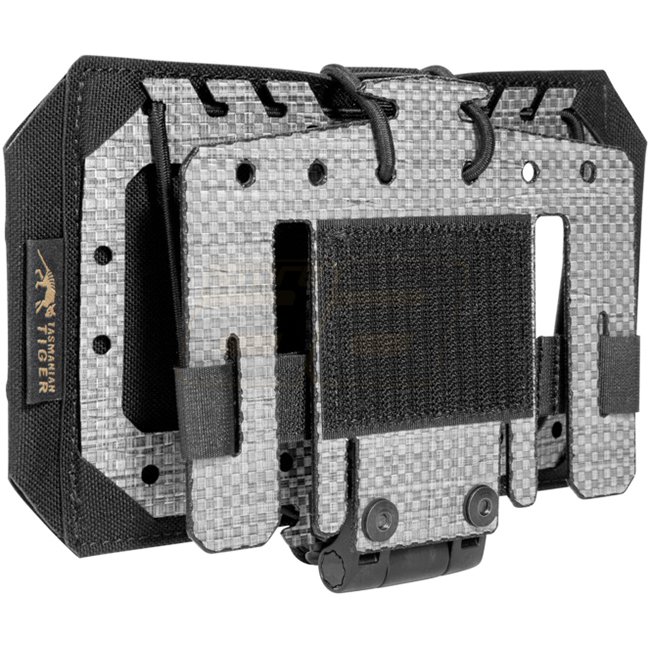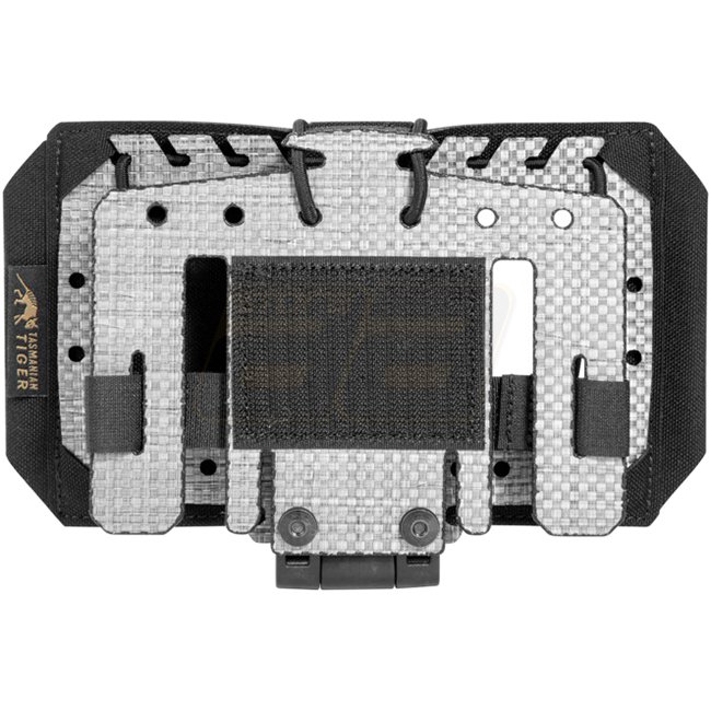 Die TT Foldable Phone Plate ist als horizontale Halterung für Smartphones auf Höhe der Brust konzipiert. Ihr aus 12-lagigem Tegris® gefertigter Kern lässt sich nach vorne klappen und wird durch individuell geschlungene Bungee-Kordeln sicher fixiert.