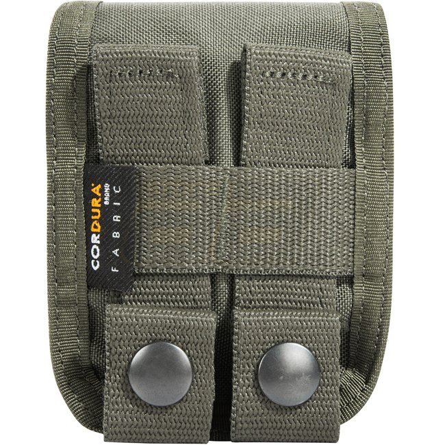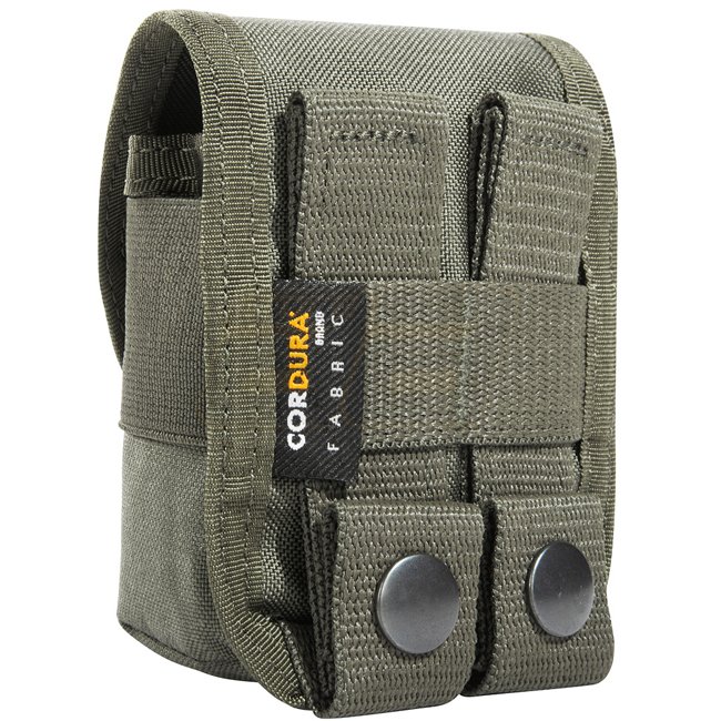 Hand grenade pocket. Variable construction makes it suitable for various models. Made of CORDURA® and material with IRR treatment. Both the European CORDURA® materials as well as web-bing, hook-and-loop fasteners and buckles meet the high German Bundeswehr standards TL 8305-0278 and TL 8305-0281 with regard to the IRR camouflage effect (IRR 650 – 1250nm / 10 – 42%).
