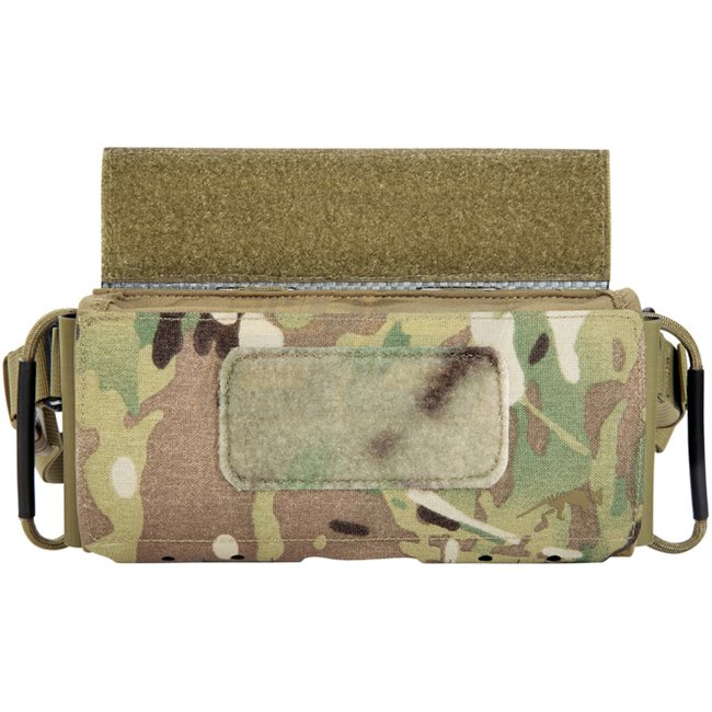 Die kompakte Erste-Hilfe-Tasche in Multicam kann unter einem Plattenträger befestigt oder als Hüfttasche getragen werden. Die abnehmbare Verbindungsplatte aus Tegris® mit Klettfläche ist beidseitig nutzbar. Das herausziehbare Innenpanel sorgt für schnellen Zugriff und flexible Organisation.