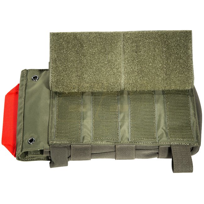 First-aid kit with MOLLE hook and loop attachment. The TT IFAK Pouch VL L features hook panels for easy attachment to loop counterparts, for example directly on the TT Modular Front Seat Panel. It has a MOLLE hook and loop adapter. The IFAK kit is accessed from the side of the pouch. Made of CORDURA® and material with IRR treatment. Both the European CORDURA® materials as well as web-bing, hook-and-loop fasteners and buckles meet the high German Bundeswehr standards TL 8305-0278 and TL 8305-0281 with regard to the IRR camouflage effect (IRR 650 – 1250nm / 10 – 42%).