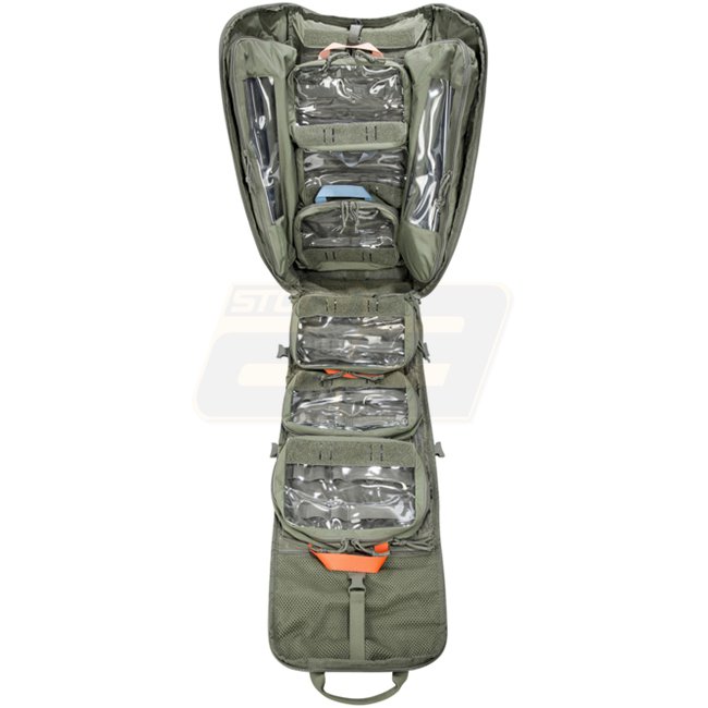Dieser modulare Medizin-Rucksack ist für Feldlazarette der Stufe 1 konzipiert. Er bietet ein Volumen von 57 l (52 l Hauptfach + 5 l Deckelfach) und ermöglicht dank vollständig aufklappbarem Hauptfach sowie Hängevorrichtung schnellen Zugriff auf Ausrüstung.