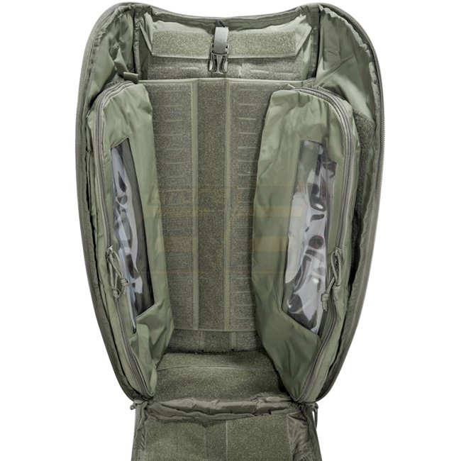 - Hauptfach mit 8 herausnehmbaren, transparenten Taschen und Klett-/MOLLE-Innenflächen zur individuellen Organisation