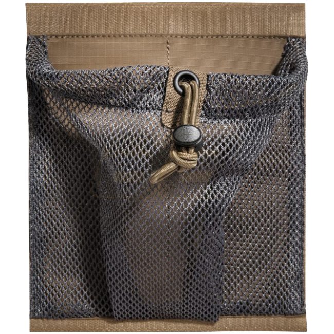 Compact Tasmanian Tiger Modular Collector M VL in Coyote color with 4 pouches in different sizes and mesh bag for medical gear. Attachable inside Modular TT Medic Packs or outside using hook-and-loop panels. Dimensions: 16 x 16 x 1 cm.