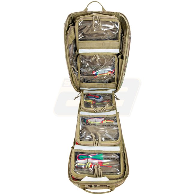 Dieser modulare Medizin-Rucksack mit einem Volumen von 38 l wurde für taktische Einsätze und Spezialeinheiten entwickelt. Er kann über Schutzwesten getragen oder direkt daran befestigt werden.
