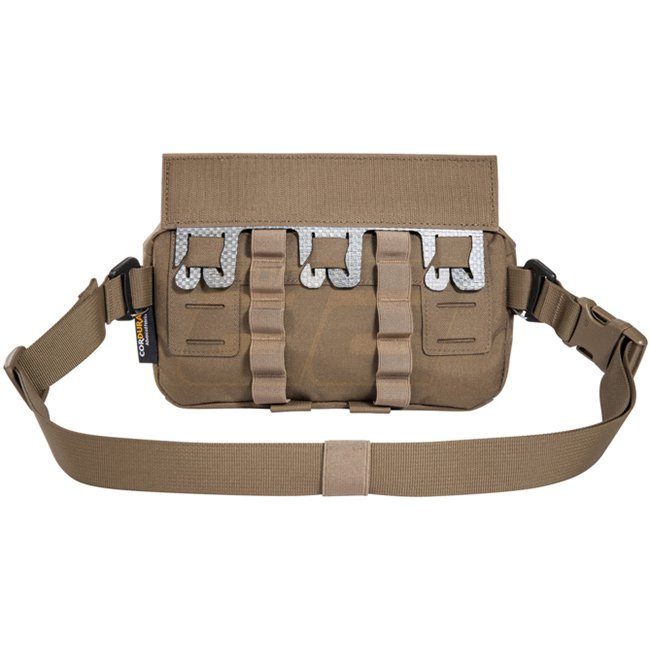Diese multifunktionale Tasche lässt sich unter einem Plattenträger anbringen oder als Hüfttasche nutzen – ideal zur Erweiterung von Tragesystemen mit geringem Profil.