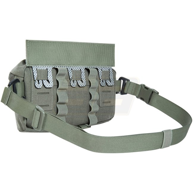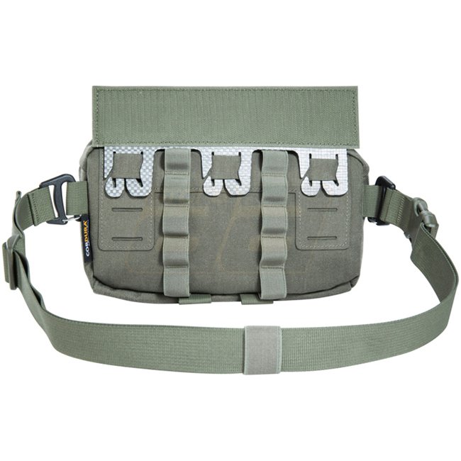 Diese multifunktionale Tasche lässt sich unter einem Plattenträger befestigen oder als Hüfttasche nutzen – ideal zur Erweiterung von Tragesystemen mit geringem Profil.