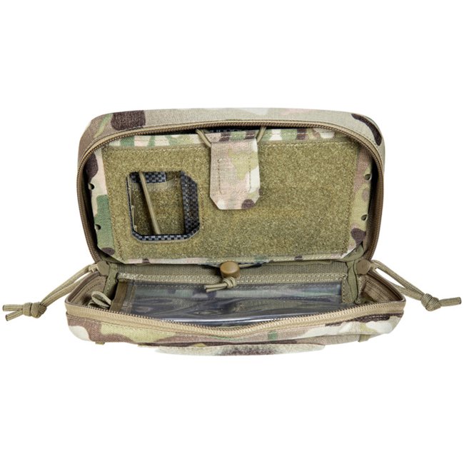 Diese Organizer-Tasche mit All-Round-Reissverschluss und Umklappfunktion nach vorne eignet sich zur Befestigung an Plattenträgern oder MOLLE-Systemen. Sie verfügt über transparente Dokumententaschen, Reissverschluss-Netztaschen, eine herausnehmbare Dokumententasche sowie einen herausnehmbaren Smartphone-Halter aus stabilem Tegris®-Material.