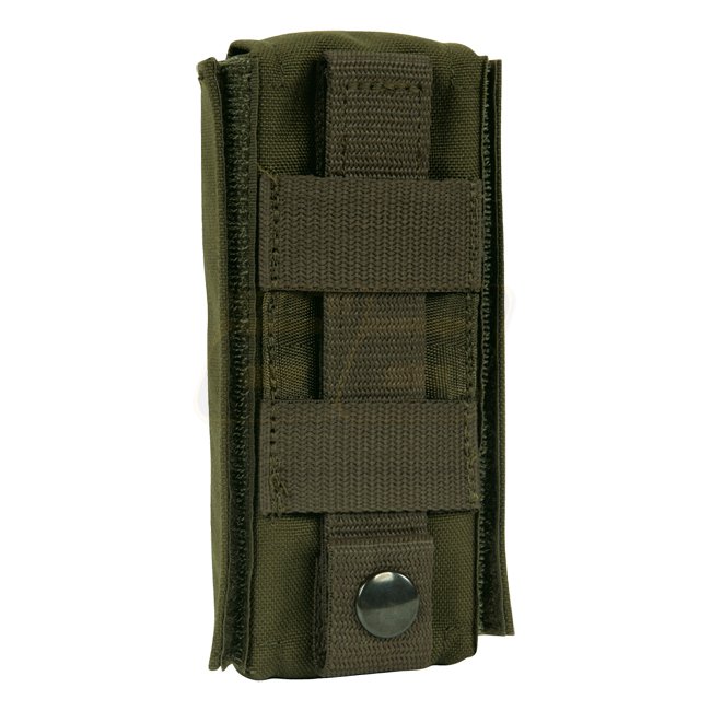 Compact olive pouch with quick-release system for CAT tourniquet. Fast Velcro access, elastic loop inside, MOLLE system. 12x7x2.5 cm, 45g, Cordura 700D.