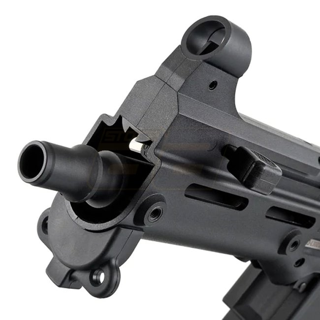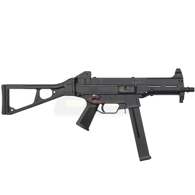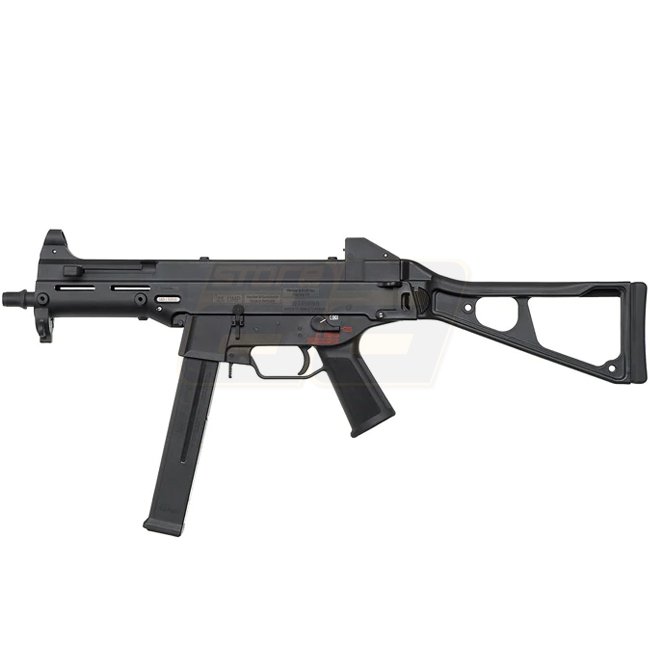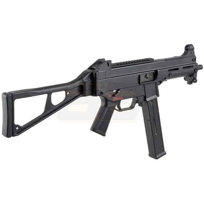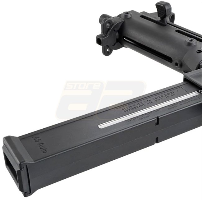 Die UMP45 DX GBB ist eine detailgetreue Replik des UMP45 Maschinenpistolen-Designs, entwickelt als moderne Alternative zur MP5. Die echte UMP wurde Ende der 1990er-Jahre eingeführt und sollte mit einem geringeren Gewicht, vereinfachter Fertigung und höherer Modularität überzeugen – unter anderem durch das markante Polymergehäuse und Kaliberoptionen wie .45 ACP.