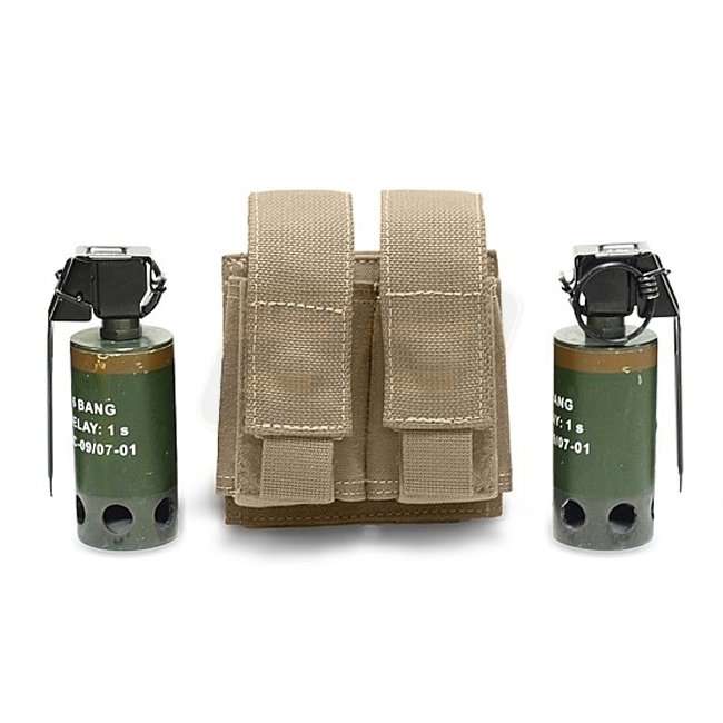 The Warrior Double 40mm Grenade Pouch is designed to hold two 40mm UGL grenades, NICO Multi Bangs, or 38mm Batton Rounds. It features an adjustable-height closure for a secure fit, accommodating different sizes with ease.