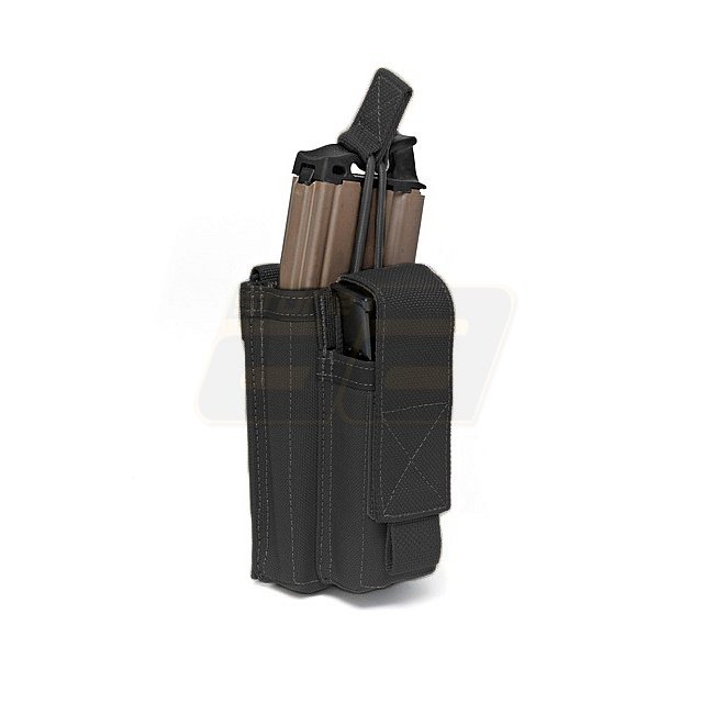 - Dual compartment design: Main compartment for 5.56mm magazines and a front pouch for 9mm pistol magazines.