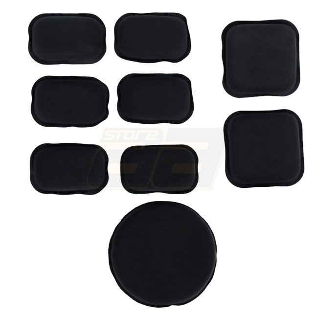 The MK HL‑104‑E replica helmet is made of rugged ABS‑nylon with a rough matte finish to reduce glare. Ventilation holes provide airflow, and 9 Velcro‑attached cushions inside secure a customized and comfortable fit during extended wear. The 4‑point chin strap with chin pad ensures stability. Color: Black.